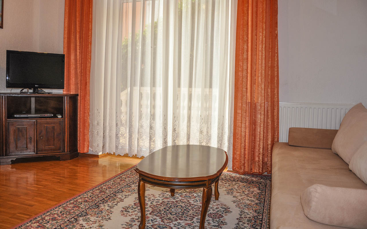 Apartment B (43 m²)    : air condition, WiFi internet, flat-screen cable TV, electric grill, induction hob, oven, microwave oven, refrigerator with freezer, coffee machine, toaster, dish washing machine, washing and drying maschine, iron, ironing board, hair dryer, stylish furniture. Living room - sofa bed, bedroom - double bed 180 x 200, small kitchen, bathroom with bath tub, covered terrace.