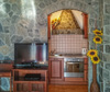 Appartement C (40 m²)    : Klimaanlage, Internet WiFi, LED-kabel-TV, Mikrowellenherd, Küchlschrank-Gefrierraum, Induktionskochfeld, Kaffemaschine, Toaster, Elektro-Grill, Spülmaschine, (Waschmaschine und Trockner in der Waschküche) Bügeleisen, Bügelbrett, Trocknenhaube, Stilmöbel, Wohnzimmer - Zofabett, Schlafzimmer – Doppelbett 180 x 200, kleine Küche, Badezimmer mit Badewanne, eine überdachte Terrasse.